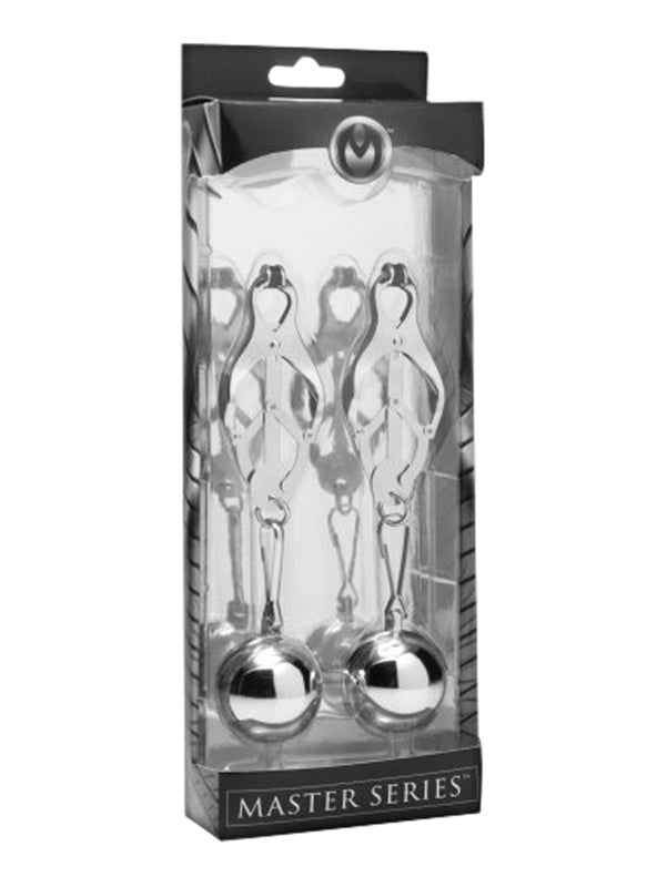 Diese Nippelklemmen mit jeweils 230 g schweren Gewichten sind perfekt, wenn Sie den Druck gerne steigern möchten. Die Klemmen sind am Ende mit Gummi versehen, sodass diese stabil auf Ihren Nippeln bleiben. Die Klemmen sind so entworfen, dass sie stärker klemmen, wenn sie nach unten gezogen werden. Erleben Sie durch die Gewichte an der Unterseite der Klemmen das Gefühl von Druck an Ihren Nippeln!
