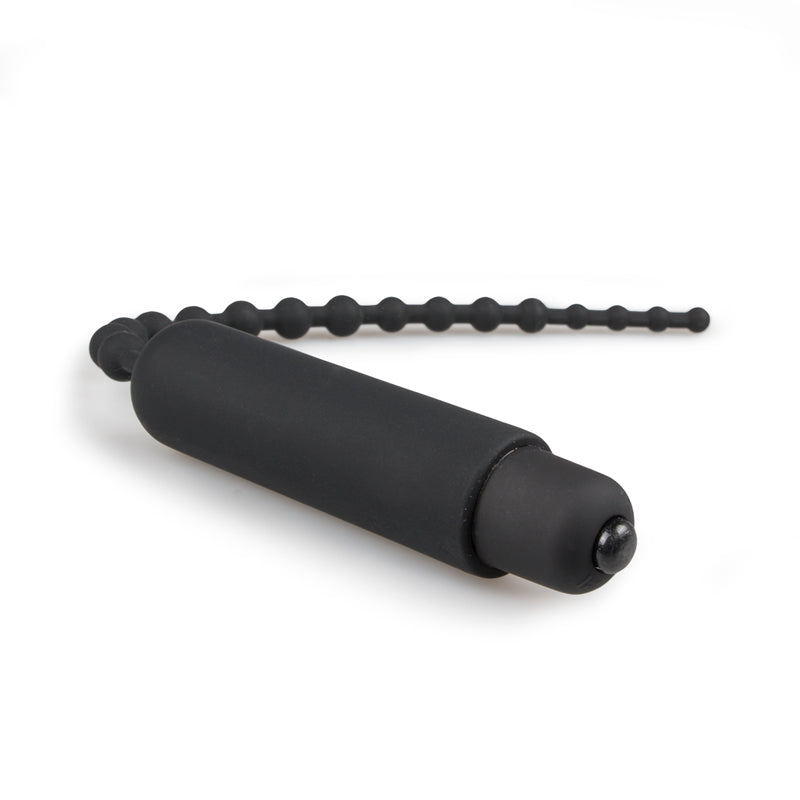 Erforschen Sie dunkle Tiefen mit dem Dark Rod von Master Series. Dieser Silikon-Dilator bietet Ihnen die Möglichkeit, Ihre intimsten Zonen zu erforschen. Trauen Sie sich ran? Der Dark Rod ist ein schwarzer Dilator mit einem robusten, coolen Design. Der gesamte Dilator ist aus einem weichen Silikon-Material hergestellt, dass sich herrlich auf der Haut anfühlt und einfach zu reinigen ist. Der Dark Rod ist daneben ausgestattet mit einem vibrierenden Bullet, der Sounding zu einer völlig neuen Dimension bringt. Wie funktioniert es? Tragen Sie ein wenig Gleitmittel auf dem Dilator und auf dem Penis auf und bringen sie dann Bällchen um Bällchen ein. Fühlen Sie, wie der kugelförmige Schaft langsam in Ihren Penis hineingleitet und setzen Sie dann den Bullet-Vibrator ein. Nach welchem Verlangen fischen Sie?
