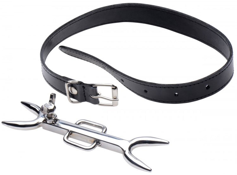Weichen Sie mit diesem Kragen, der alles andere als durchschnittlich ist und in eine Haltung zwingt von der Norm ab! Die Ketzergabel hält das Kinn Ihres Subs mit seinen zwei entgegen gesetzten Zinken, die sich in das zarte Fleisch von Brust und Hals graben, hoch, wenn Sie den Druck nicht entlasten können! Legen Sie das schlanke und attraktive Lederhalsband um Ihren Hals und passen es an, mit der Rändelschraube können Sie die Länge der Gabel verändern. Zwingen Sie den Kopf Ihres Liebsten so hoch, wie Sie wollen! Die auffallende Ästhetik dieses einzigartigen Haltungskragens wird Ihre beiderseitige Erregung steigern und eine intensivere Szene schaffen!