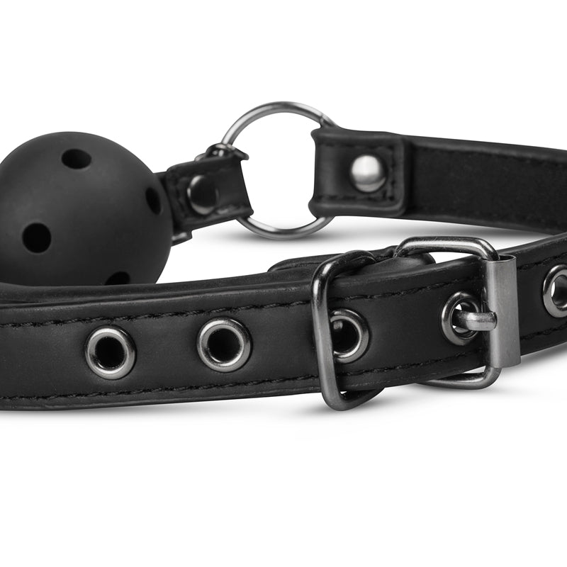 Entscheiden Sie sich mit diesem Ballknebel mit Nippelklemmen aus der Fetisch-Kollektion von EasyToys für das Extreme. Dieser schwarze Ballknebel ist aus glattem Kunststoff mit Luftlöchern. Der Ball ist geruchlos und geschmacklos, sodass der Träger den Ballknebel ohne Bedenken genießen kann. Das Kopfband aus Kunstleder für eine perfekte Passform ist verstellbar. Am Kopfband sind Nippelklemmen mit Ketten befestigt. Die Klammern sind seitlich mit den Schrauben für unterschiedliche Wahrnehmungen verstellbar. Balldurchmesser: 4,3 cm