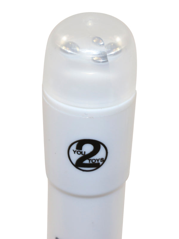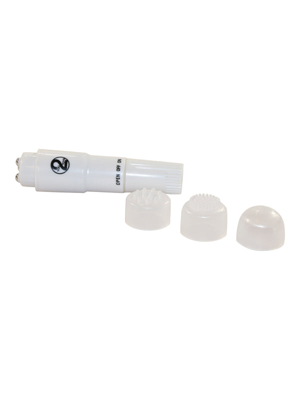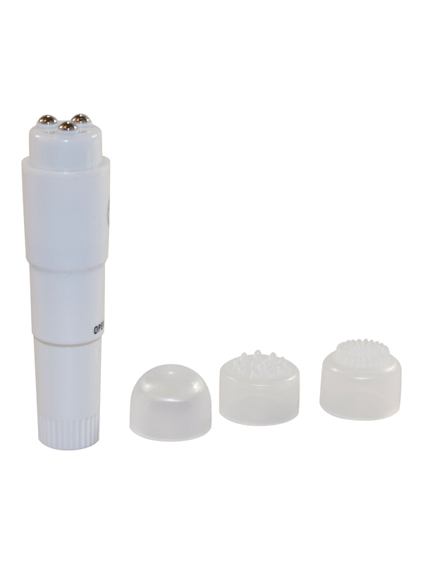 4-teiliges Massage-Set aus festem Gleitmaterial. Vibrator: 10 cm lang, Aufsätze: 2 x 2 cm.