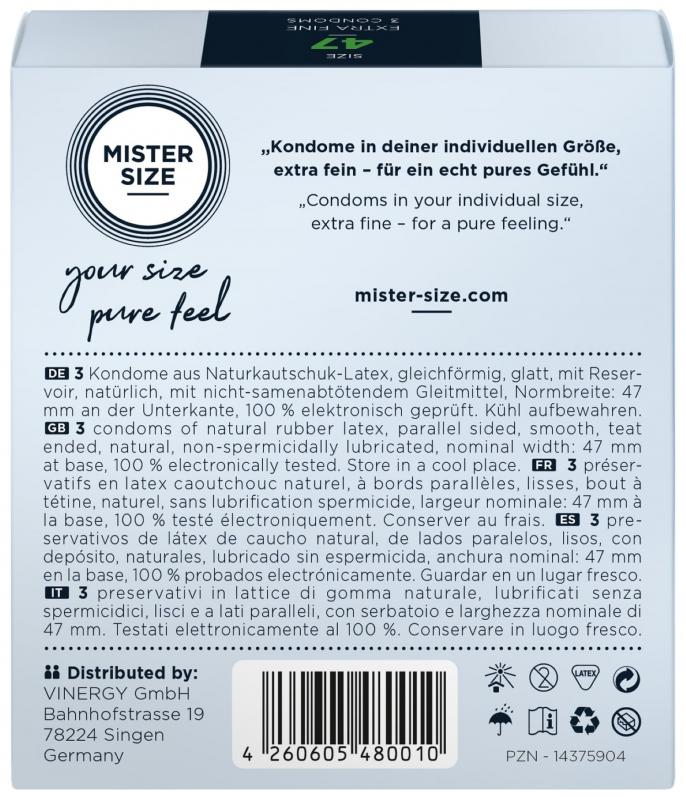 Diese 47 mm breiten Kondome sind enger und haben die folgende Maße:
